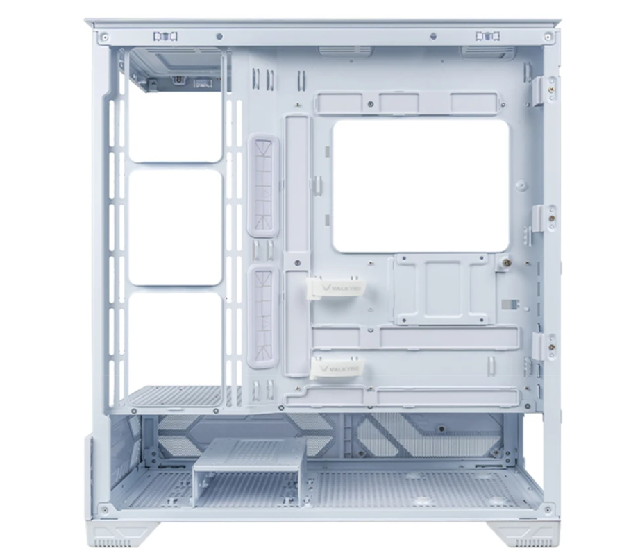 背面はすっきりしており、配線しやすそうなフックが多数+白のダクトカバーがついてるのは結構好感触。HDDを使用しないなら、そことっぱらってごちゃつく配線を全部押し込めろ!