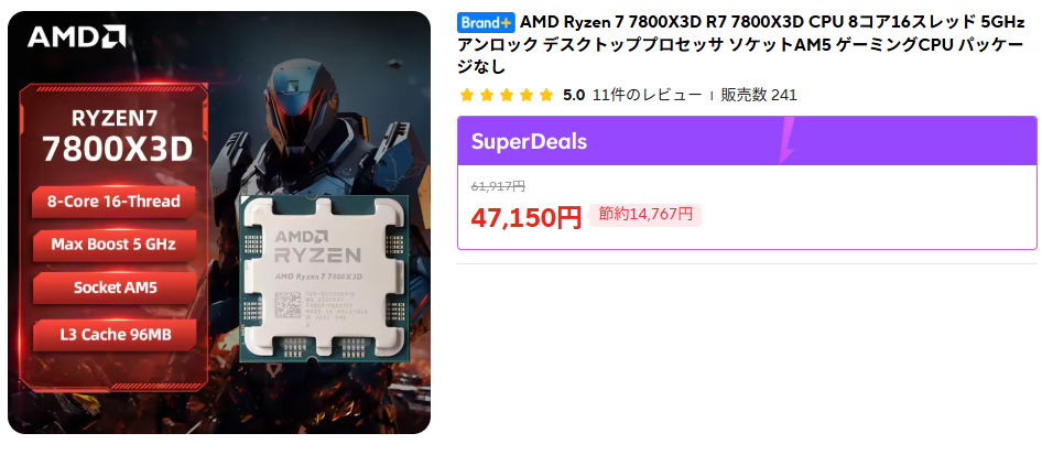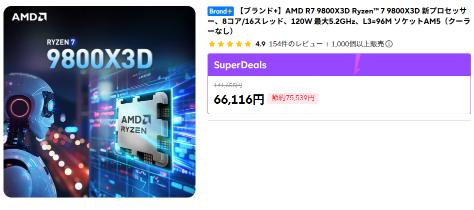 9800X3Dの国内価格が7万きるとこまで来てるので、アリエクの美味しさが実感できなくなってますねw ただし、過去を紐解くとトレー版で売ってるアリエクは日本国内よりも1万円以上安価に売ってる過去があったので、これも値下げや、クーポンを使用できる事への期待を込めています!