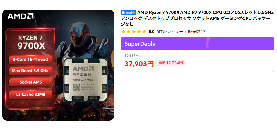 CPU全般に夏前よりも少し値上がり傾向ですよね、35000円で買えた9700Xがこの価格でまだ買えるかな?って感じですが、これもコードがつくのを期待できます。ゲーム性能では7800X3Dに劣れど、それ以外の全てで7800X3Dより性能が上の8コアモデル。AMDのド定番CPUだと思っています。