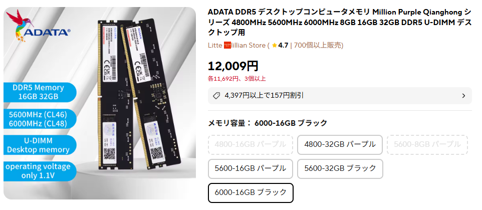 俺はこの夏前に案件でORICOさんの6400MHZ CL30をレビューしたんだけど、16GB*2のセットで13000円切っていたんだぜ?、探しまくっての今回アリエク最安値がこの価格なので、
