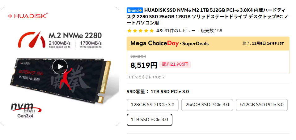 SSDはまた耐えてる?1TBで一番安いのを探したら、いつもの南拳が飛び出しました。