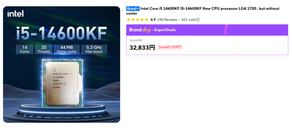 14600KFちゃん、もっと安い時期もあったけれど今はこの価格なんだよね。ただ自分的には5700Xよりもアリよりもアリだと思っています。