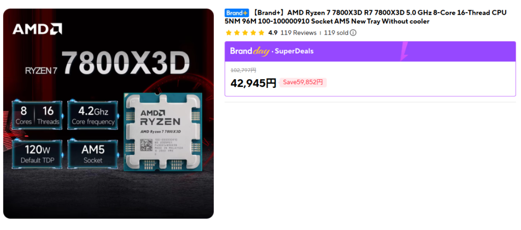 同じ理由で9800X3Dよりも7800X3D。Vキャッシュモデルの今の価値ってFPSを上げることよりも1%Lowを引き上げるのが一番強い使い方だと思うんですよね。そうなるとこの7800X3Dでも充分説があると思います。